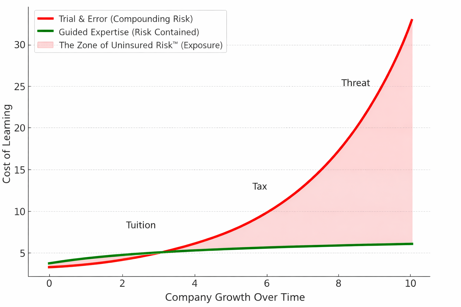 The Zone of Uninsured Risk is where the cost of learning compounds faster than the leader’s capacity to learn.